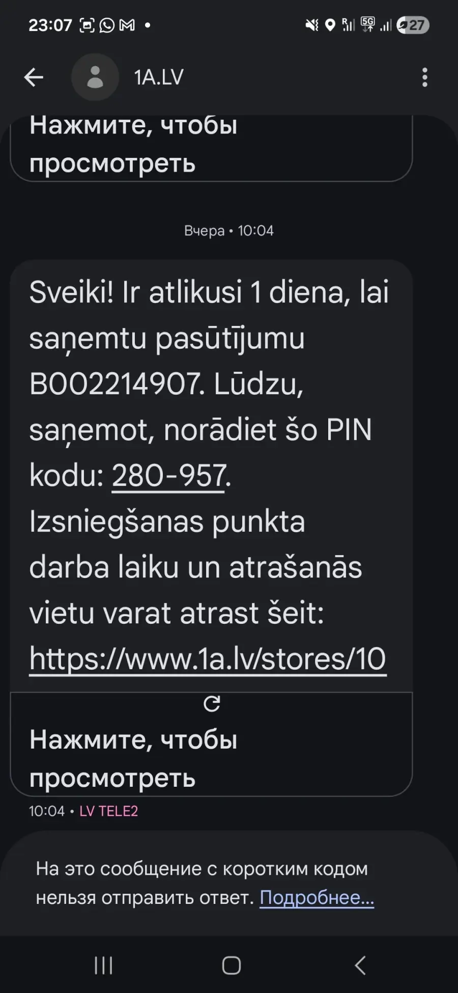 Sarunas laikā savienojums pārtrūka, tomēr man tika pateikts, ka saņemšu īsziņu ar informāciju. Tā vietā vēlāk saņēmu e-pastu, kurā bija norādīts, ka preces saņemšana iespējama tikai 6. februārī.