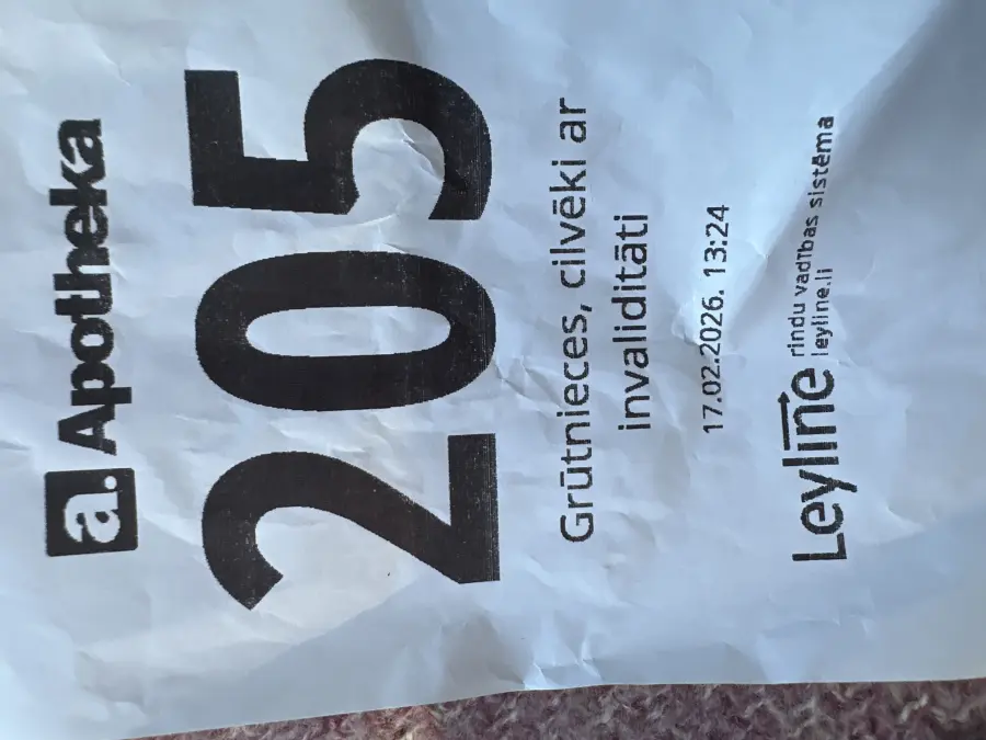 Grūtniecēm un ar maziem bērniem cilvēkiem nav ko šeit darīt. Numuru tā arī neizsauca. Nogaidijam 15 minutes. Apkalpoti tika 3 cilvēki, bet numuri kādi 8 izsaukti, bet ne mans un pēc tam uz displejs, parādījās arī ka neviens grūtnieču rinda nav. 3 darbinieki, 2 savā starpā runa un staigā apkārt, viens strāda. Esmu 8 mēnesi un man līdzi 2 gadnieks. Kāda jēga no numuru sistēmas? Tad labāk kā parasti dzīva rinda, ja protams apkalpo visi darbinieki nevis viens.
