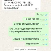Sākotnēji tika norādīts, ka izbraukšana notiks 2026. gada 3. janvārī, vēlāk tā tika pārcelta uz 2026. gada 10. janvāri. 2026. gada 9. janvārī sazinājos, lai precizētu izbraukšanas detaļas, taču pēc solījuma sniegt informāciju pēc plkst. 12:00 saziņa tika pārtraukta. Atbildes netiek sniegtas, darbs nav nodrošināts, un samaksātā summa nav atmaksāta.