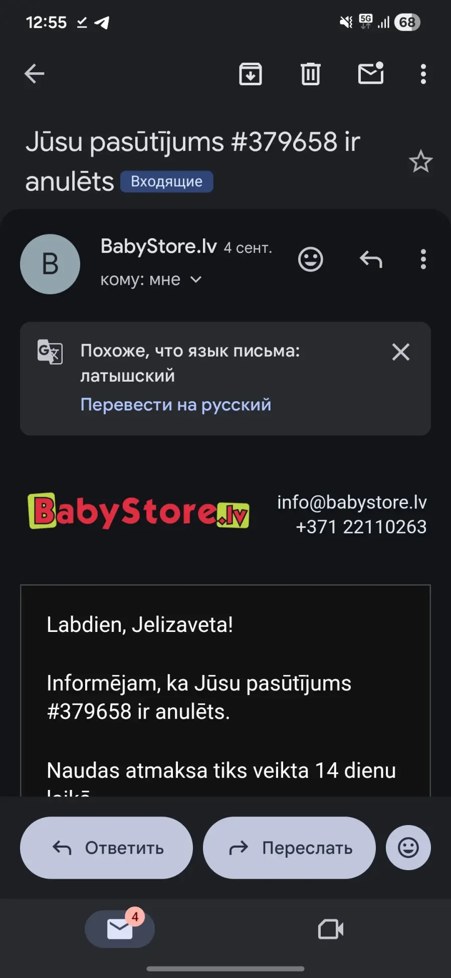 1. septembrī es pasūtīju no viņiem 3-in-1 ratiņus.4. septembrī viņi man atsūtīja ziņojumu, ka viņiem nav šīs preces un ka to var aizstāt ar citu.Es atteicos, un man teica, ka naudu saņemšu atpakaļ 14 dienu laikā.Paiet 14 dienas, es viņiem piezvanu, bet tad saņemu šādu ziņojumu: viņi pazaudēja manu kontu, un man tas jānosūta pa pastu, un atmaksa būs līdz 26. septembrim.Tā rezultātā šodien jau ir 7. oktobris, un zvani, e-pasti un Instagram arī tiek ignorēti.