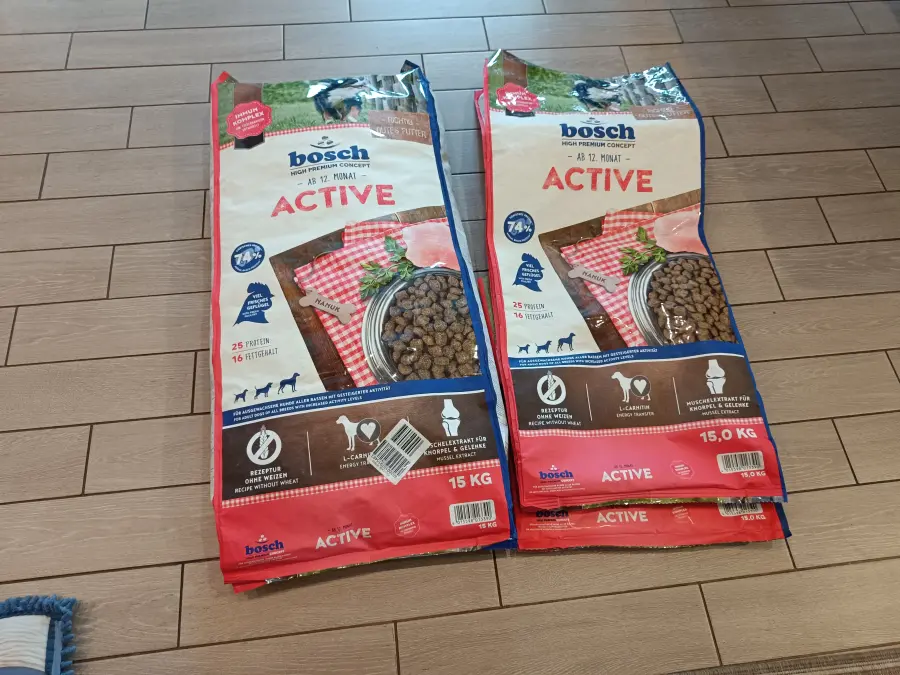 Заказали Bosch Active 15kg 6шт. До этого 3 года покупали этот же корм в Германии на Зооплюс. Когда залили корм водой, так как пёс ест только размягчённый корм, увидели, что он превратился в однородную жирную кашу с неприятным запахом. Сами гранулы корма в размере не увеличись. Гранулы немецкого корма в воде разбухали и оставались упругими. Начали расматривать упаковку и тоже увидели отличия. На четырёх и на двух мешках пробит одинаковый тайминг производства. Края мешка имеют ровный срез, а на оригинале край волнистый.