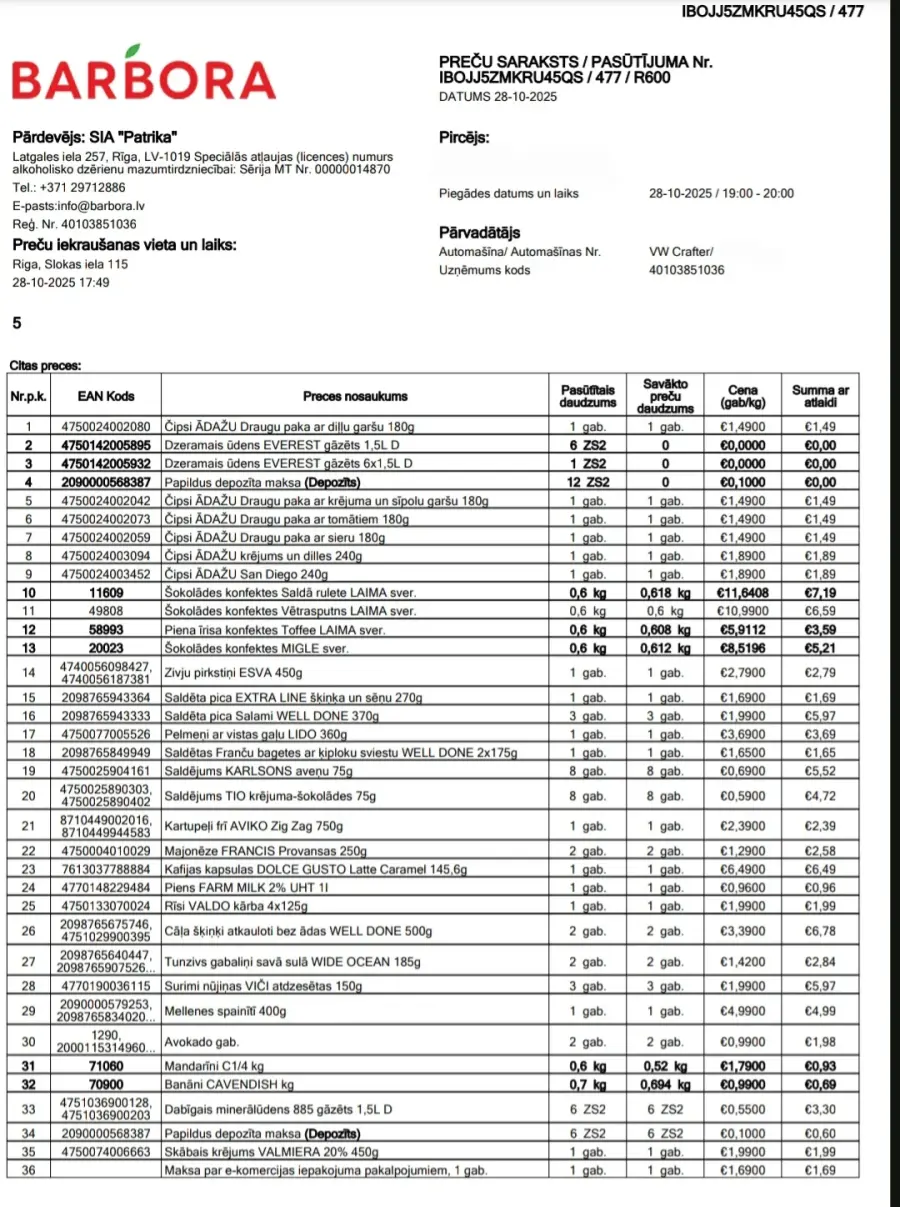 Šovakar ļoti vīlos Barboras kurjerpiegādes darbiniekā un sarunā ar Barboras info centra konsultanti un kopsummā ar Barboru kā produktu piegādes pakalpojumu sniedzēju. Ap 19.30 piegādāja pasūtījumu, un, atverot dzīvokļa durvis, biju nepatīkami pārsteigta, jo pāris no maniem produktiem, precīzāk, konfektes mētājas pie zemes, nevis maisiņā. Kad sāku pārbaudīt piegadātos produktus, sapratu, ka svarīgākais produkts, kura dēļ vispār veicu pasūtījumu, tika piegādāts vien 1/3 apjomā no pasūtījuma. Pieminēšu, ka, ņemot vērā, ka ūdens pudeļu iepakojumi ir smagi un neparocīgi un lai man kā sievietei nav jāstaipās, pasūtīju 18 ūdens pudeles (maksimāli atļautās 6 pudeles no katra veida, kopā 3 veidi). Man piegādāja vien 6 pudeles. Pārbaudot piegādātos produktus ar uzskaitītajiem produktiem rēķinā, sapratu, ka iztrūkst vēl divas pozīcijas - šokolādes konfektes Vētrasputns un šokolādes konfektes Saldā rulete. No sākuma domāju, ka varbūt veikalā tās nav bijušas, tāpat kā ūdens (kaut gan neticu, ka Slokas ielas 115 Maxima XXX veikalā nebija manis izvēlētās ūdens pudeles), taču, aplūkojot rēķinu, redzēju, ka konfekšu summa nav vienāda ar 00,00 (kas bija pretī ūdens pudelēm, kuras netika piegādātas), līdz ar to produktiem jābūt pasūtījumā. Tiklīdz izgāju cauri piegādātajiem produktiem, zvanīju kurjeram, kurš man šo piegādi veica, sakot, ka esmu ļoti vīlusies pasūtijuma piegādē un ka daži no produktien gaitenī mētājās vienkārši uz grīdas, uz ko pat nereaģēja un neatvainojās, pasakot, ka visticamāk maisiņš pārplīsa. (Pirms tam šādu starpgadījumu nav bijis un maisiņos ir bijuši pat smagāki produkti, te viela pārdomām, kā kurjeri vai komplektētāji šoreiz ir attiekušies pret klientam paredzētajiem produktiem). Jautājot, kāpēc nav piegādāti visi produkti, kurjers telefona klausulē sāka pūst un elst it kā es būtu vainīga pie tā, ka viņš visu nepiegādāja. Atcērtot, ka viņam mašīna ir tukša un tajā man paredzēto produktu nav, piebilda, ka man jāzvana uz info centru. Zvanīju uz info centru, sazvanīt nevaru, jo automātiskais atbildētājs trīsreiz vienu un to pašu informāciju stāsta klausulē, kādas pogas jāspiež, un pat nospiežot nepieciešamās pogas, tālāk nekas nenotiek. Pēc tam man atzvanīja kurjers, kurš teica, ka pēkšņi mistiski ir atradis mašīnā konfektes, taču vispār neko neteica, ka taisās piegādāt, teica, ka nodos ziņu Barboras info centram, lai sazinās ar mani. Paralēli zvanīja info centra darbiniece no Barboras un tik asā tonī ar mani runāja, ka apmulsu un nesapratu, kāpēc man kā klientei šāda attieksme jāsaņem par to, ka viņu darbinieki nav izdarījuši darbiņu līdz galam. Atcirta, ka kurjers tūlīt būšot un piegādāšot atlikušos produktus. Un ja es nebūtu pārbaudījusi produktus, vai kāds man pēc tam piezvanītu un pateiktu, ka nepiegadātie produkti tiks piegādāti?! Stipri šaubos.
