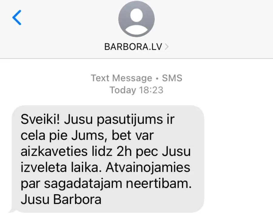 Vēlos pievērst uzmanību, ka sauklis “Barbora-viegli un ātri!” un citi saukļi par piegādi laikā ir maldinoši.