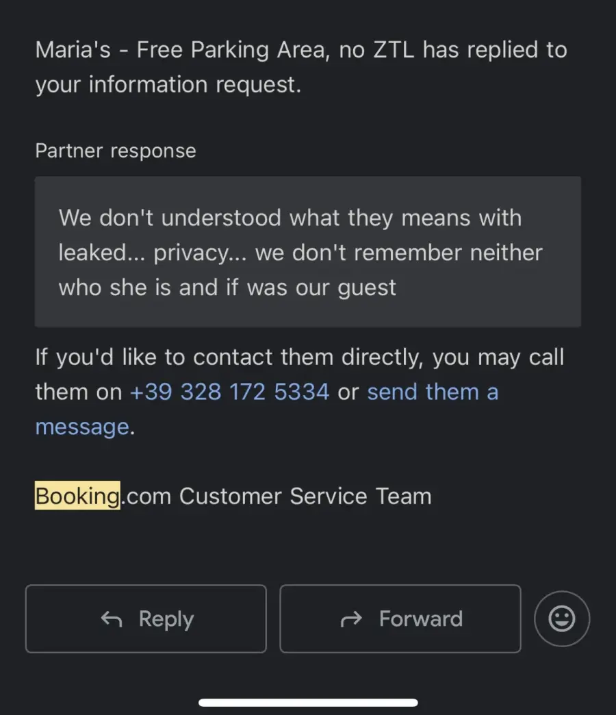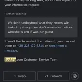 Izīrējām Itālijā dzīvokli caur booking.com, kur guļamistabā bija ievietota paslēptā kamera. Šo uzņemto materiālu saņēmām no paša īpašnieka nedaudz vairāk kā pēc pussgada pēc mūsu palikšanas, un tad pats dzīvokļa īpašnieks mani nobloķēja tālākajai saziņai. Pēc šī notikuma sazinājos ar booking atbalsta centru neskaitāmas reizes, bet lieta tā arī netika virzīta uz priekšu, dzīvokļa īpašnieks netika nobloķēts, un tas vēl turpina savu darbību booking.com. Iztērēju ap 50€, lai sazinātos tikai ar viņiem, jo booking.com atbalsta centrs atrodas Anglijā, vairākus mēnešus, bet bez rezultāta. Booking.com neizvērtē savus sadarbības partnerus, neuzņemas atbildību un nerūpējas par savu klientu drošību!’
