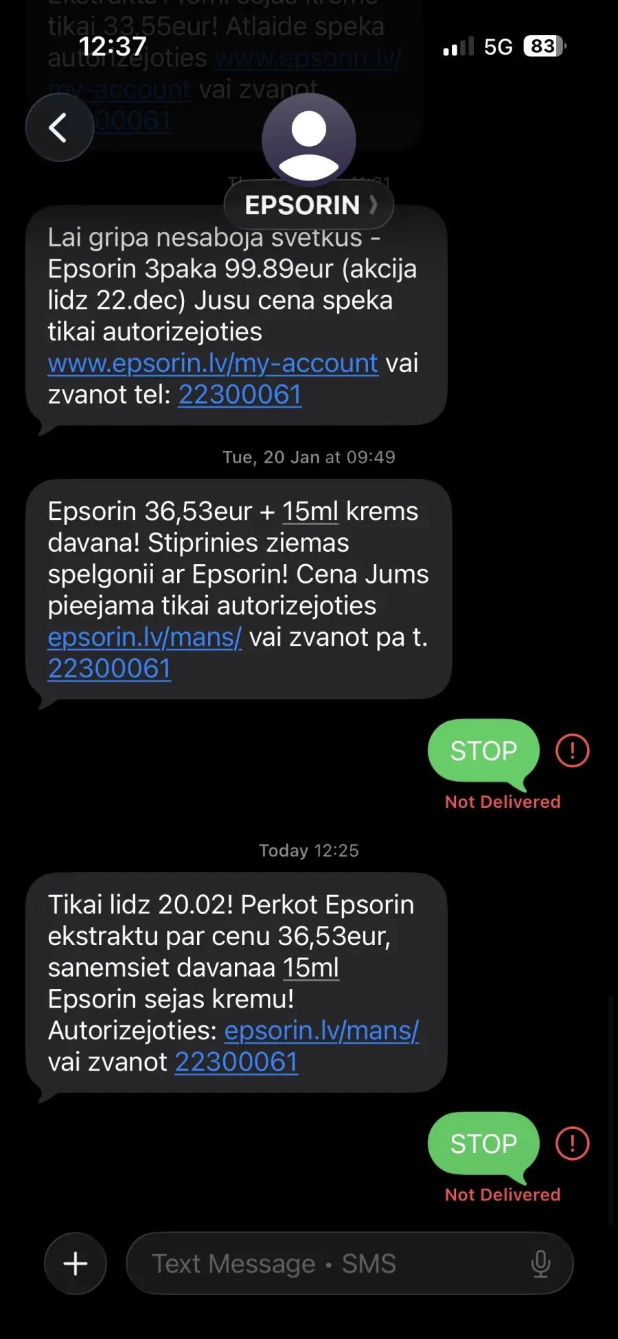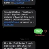 Pirms apmēram 4 gadiem iegādājos produktu 1x un kopš tā laika Epsorin sūta reklāmas uz personīgo tālruni, kaut arī esmu rakstījusi epastus ar lūgumu to vairs nedarīt. Mans lūgums, protams, netika respektēts un reklāmu sūtīšana turpinās.
