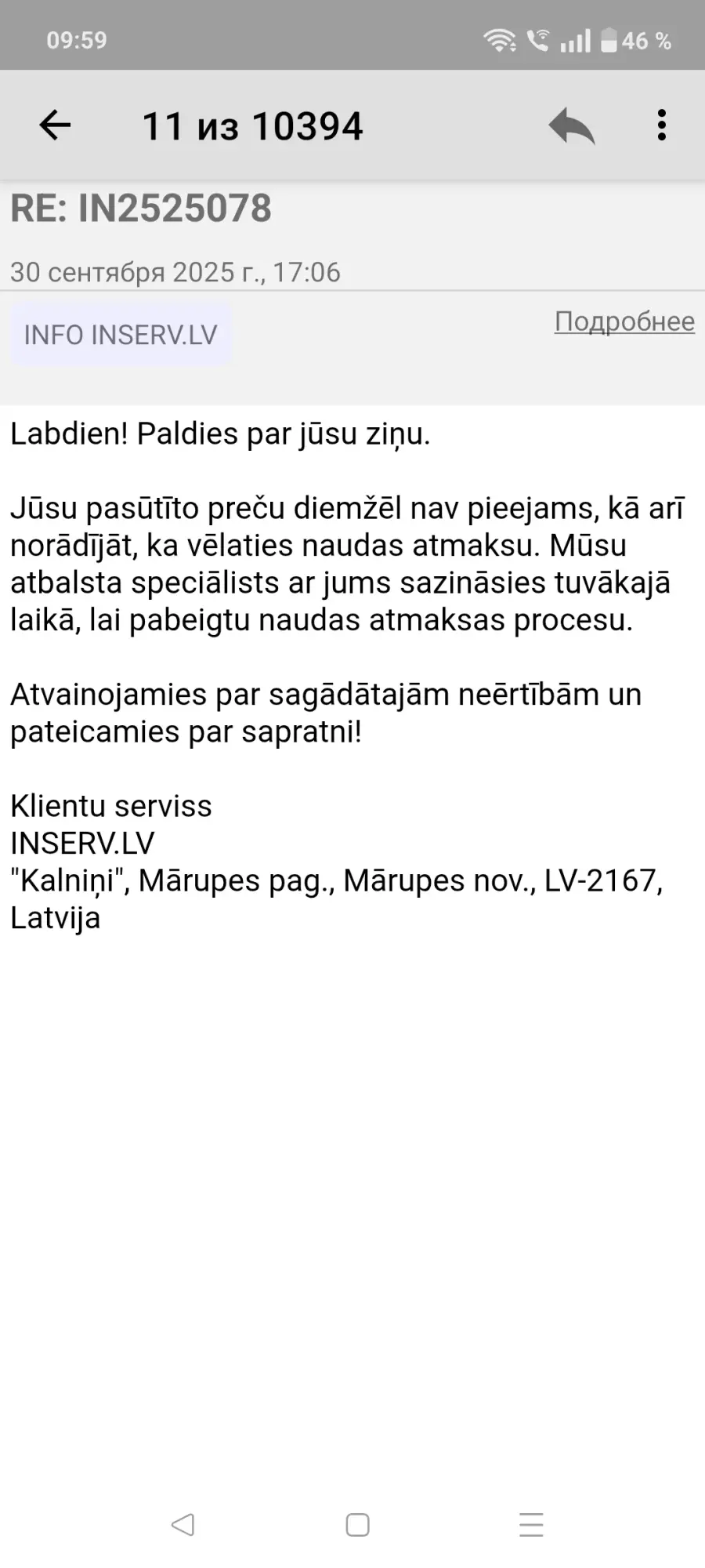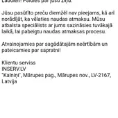 Заказал инструмент на сайте inserv.lv. Оплатил 105 евро. В итоге написали что инструмента не существует и со мной свяжутся. В итоге жду свои деньги. А почему я должен ждать? Это мошенники получается. В магазине же не ждут оплаты за товары. А здесь получается можно не существующий товар продавать. Надо штрафовать такие компании. Где закон?