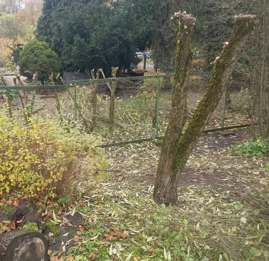 Virspretlikumības Skolas 33 kāds (-a) nevesels (-la) (demonstratīvi ?) zāģē - 'moca' kokus (?),