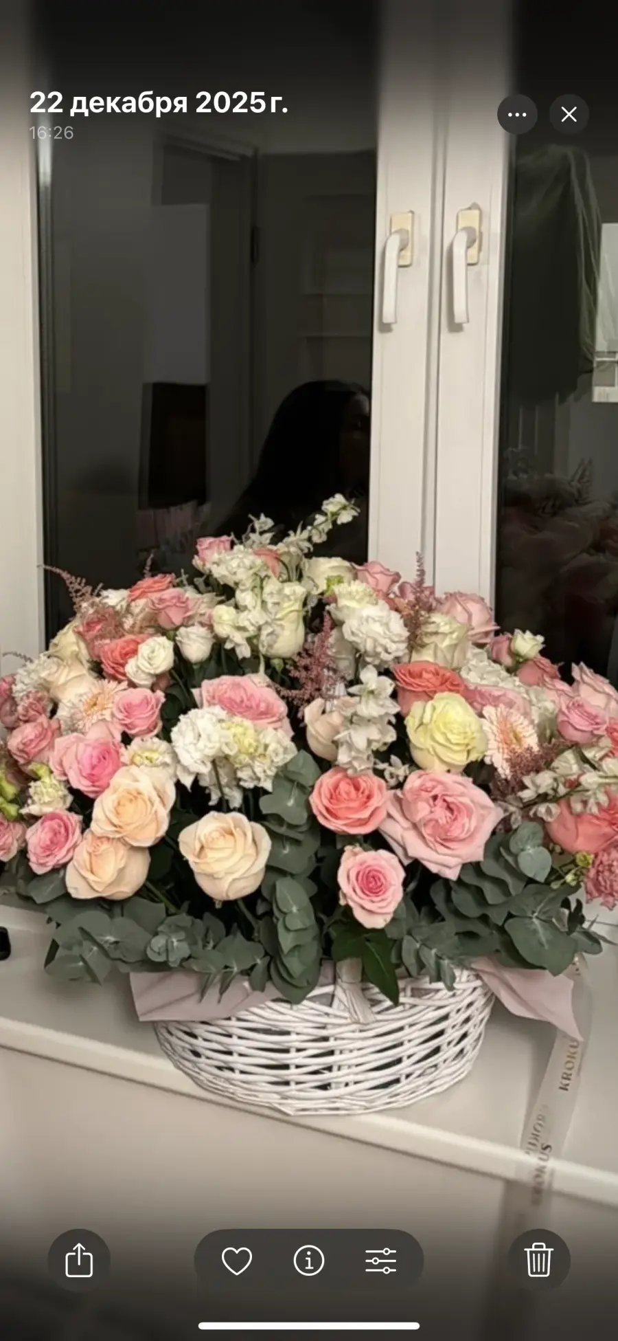 Магазин отказался помогать и сказали что они не отвечают за стойкость цветов.Потому что цветы проходят проверку. Фото сделано 22 декабря видно что цветы изначально были не свежими и точно не на 400€ Советую выбирать цветы из другого места если не хотите испортить праздник.