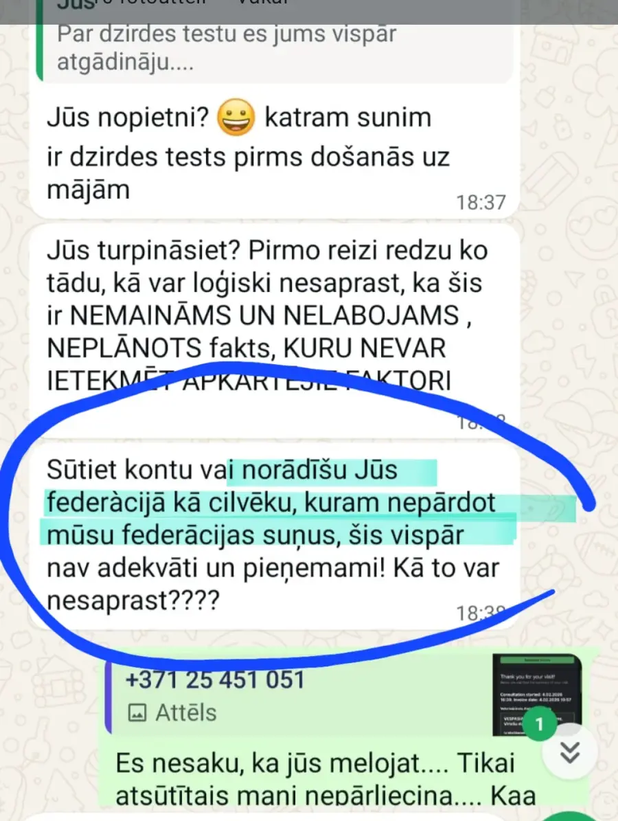 Turpmākas komunikācijas un paskaidrojumu vietā L Timane nobloķēja mūs sociālajos tīklos, apsaukāja un LKF vārdā draudēja, ka izdarīs tā, lai mēs nekad nevarētu nopirkt kucēnus Latvijā.