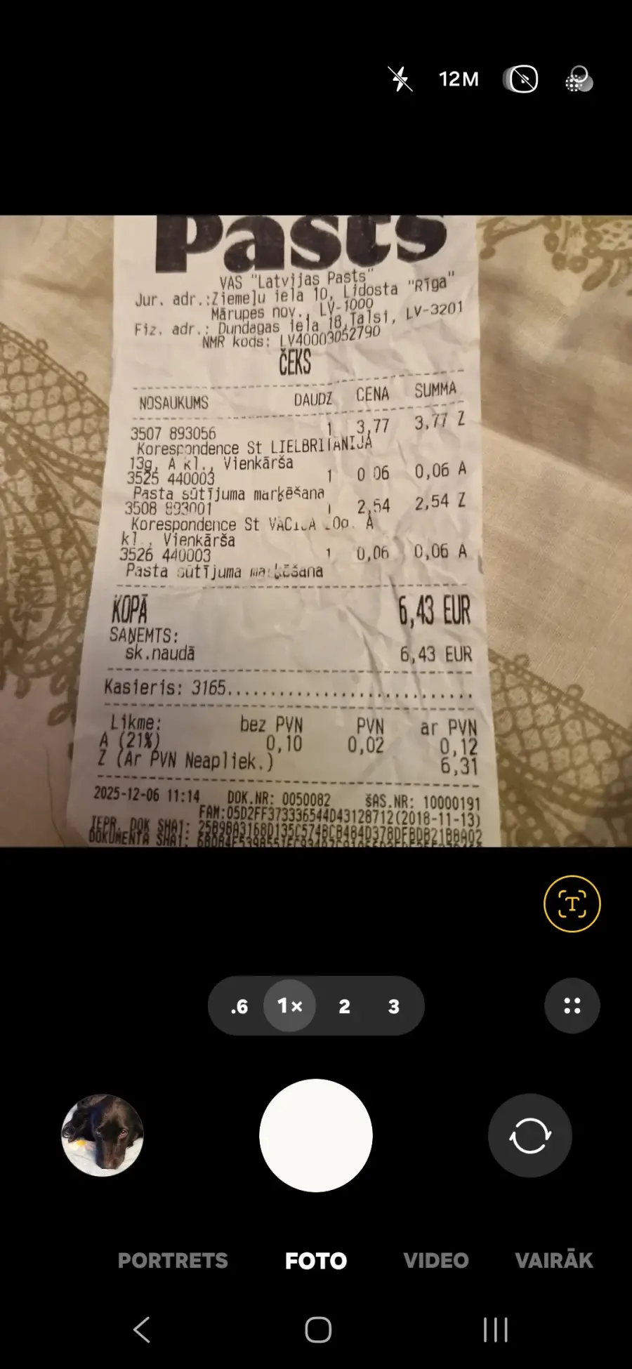 6. Decembrī iegāju pasta nodaļā nosūtīt 2 vēstules.