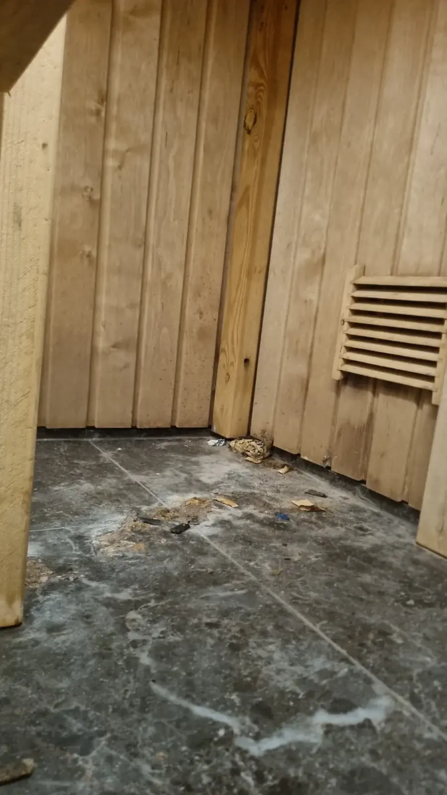 Pēc mēneša - viss kā agrāk - sauna ir piedirsta - uz grīdas mētājās atkritumi, tā smird. Likās, ka varbūt tas notika pa vienu dienu, bet nē- nākamajā dienā viss tas pats mētājās uz grīdas, nekas nebija satīrīts, kur nu vēl mazgāts. Sauna turpina smirdēt.