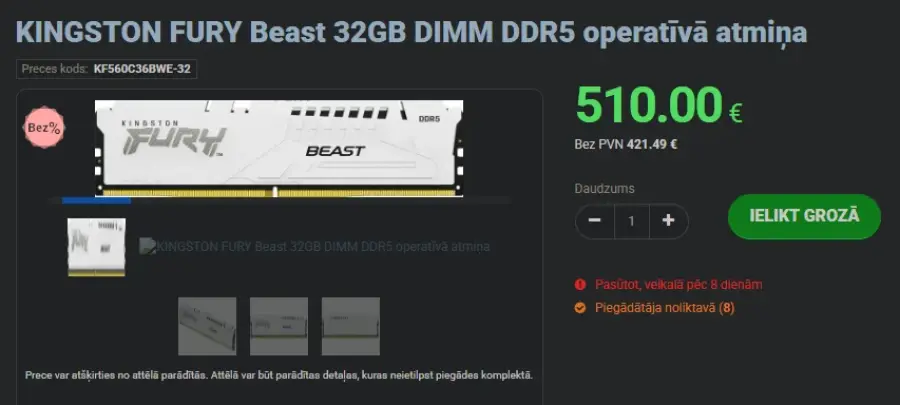 2. aprīlī veicu pasūtījumu par RAM, kura cena bija zemāka par vidējo citos veikalos (tāpēc arī veicu pasūtījumu), un samaksāju. Preces cena bija tik zema visu dienu līdz pasūtījuma veikšanai, gan vēl vienu dienu pēc tam, tāpēc tas nebija kāds nejaušs kļūdas vai neliela kļūda.