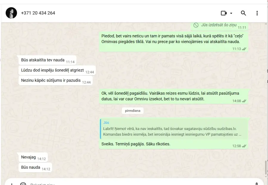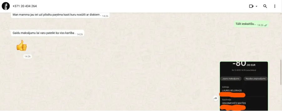 Vienojāmies par pārdodamo preci un tās cenu. Viena no pusēm atrodas Kuldīgā, bet otra Rīgā, tādēļ vienojāmies par preces nosūtīšanu ar Ominva pakomāta strapniecību. Pārskatījums tika veikts, bet preces nav atsūtīta aizbildinoties ar sūtījuma nozušanu Ominva pakomātu tīklā. Pēc vaiākiem pierasījumiem nevar atsūtīt sūtījuma izsekošanas ID. un nekomunicē pēc savas inicialitīvas gan ar pircēju, gan ar Ominva, lai risinātu problēmu, kas liecina par krāpniecisku darbību. Sola atgriest naudu, bet reālās darbībās tas nav rezultējies. Aicinu nesadarboties un neuzķerties līdzīgā sadarbībā ar Matīsu Grasimoviču.