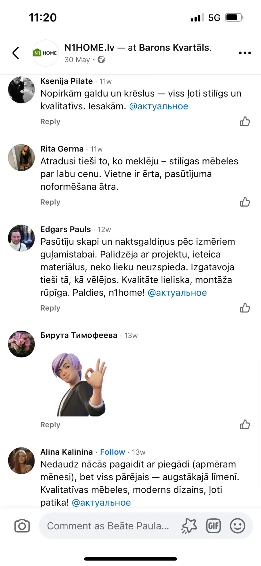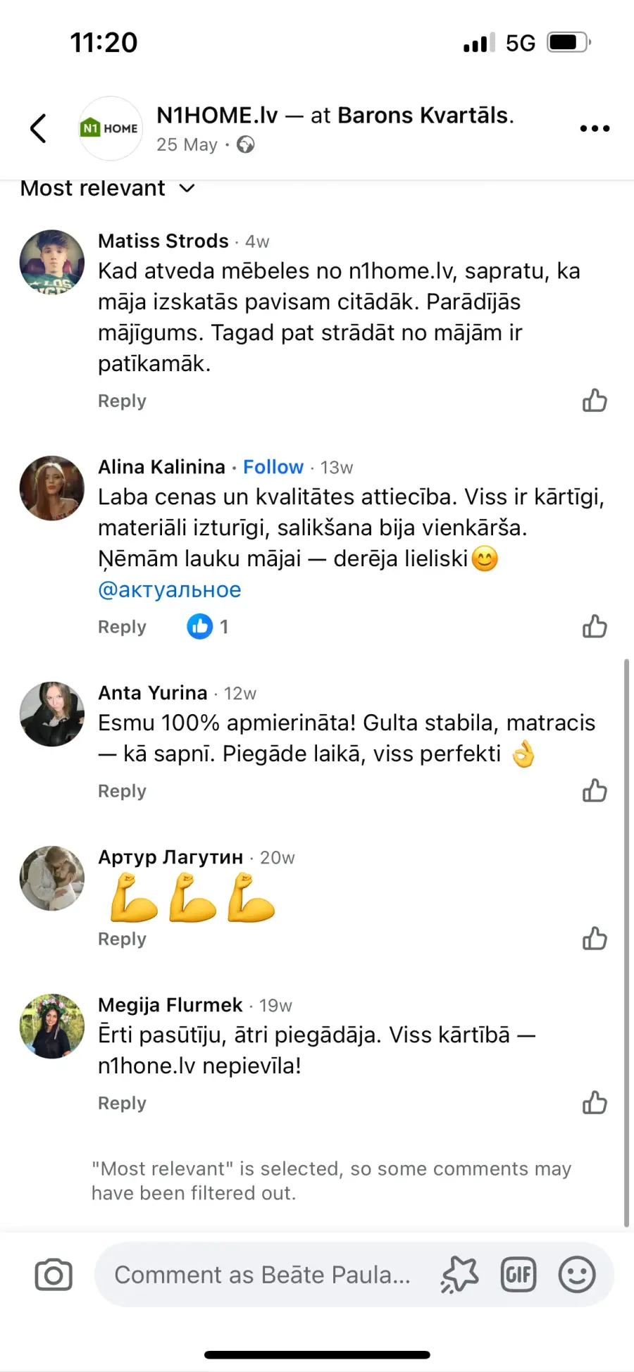 -N1Home Facebook lapā tiek maldināti cilvēki, jo kompānija nopirkusi vai likusi konkrētiem cilvēkiem rakstīt labas atsauksmes zem viņu postiem, jo daudzu cilvēku vārdi atkārtojas zem katra posta, ko kompānija liek dažādos datumos.(Pielikumā attēli)