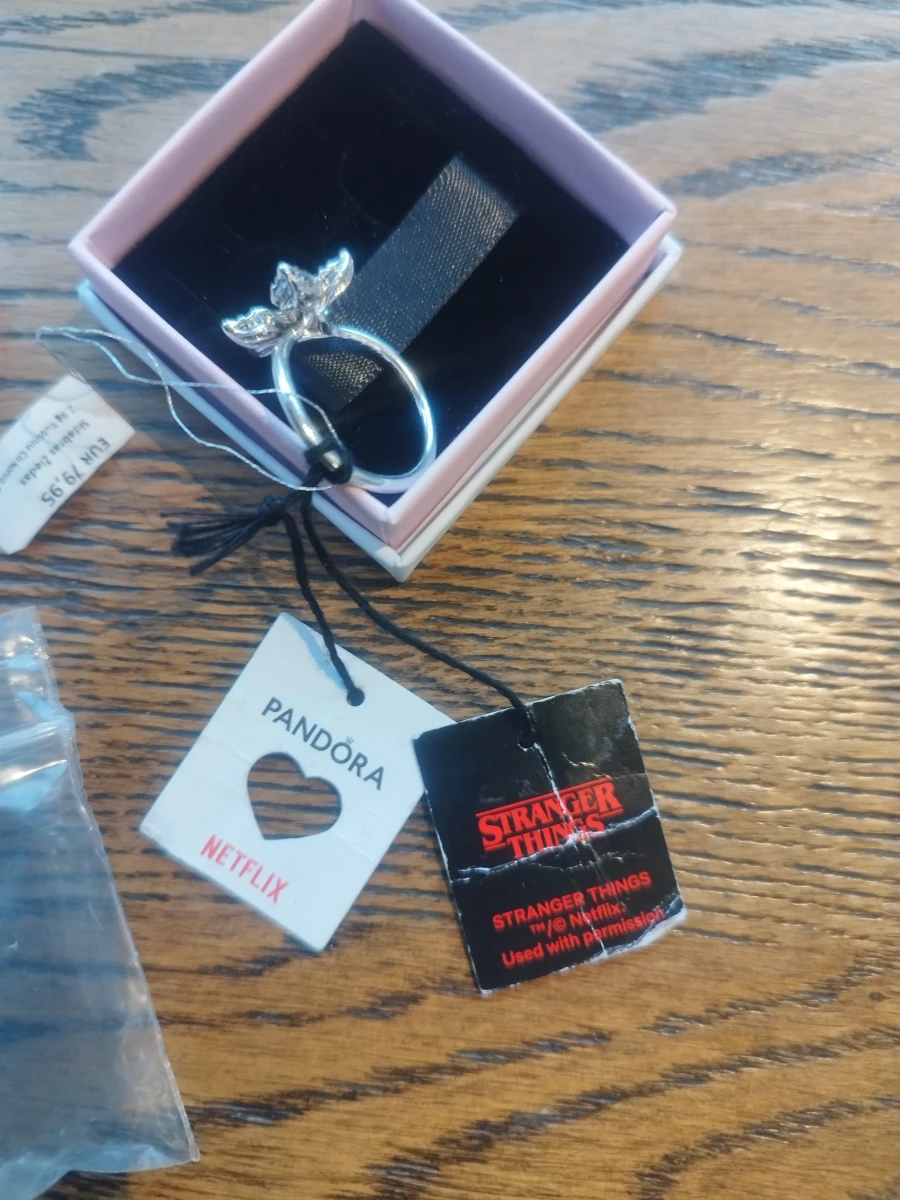 Sākšu ar to, ka meita fano par stranger things, ieraudzīju internetā piedāvājumu, skrēju uz pandora veikaliņu galerijā centrs. Pārdevēja izskaidroja, ka stranger things kolekcija nav pieejama nevienā klātienes veikalā, tikai internetveikalā, jo kolekcija esot aizvēsturiska. Ok, no stress... Ieeju internetveikalā, izvēlos gredzenu, pareizo izmēru, pasūtu, apmaksāju un gaidu savu sūtijumu. Kurjers piegādā, esmu šokā. Kartona kastē, mazā pandoras kastīte, kurā iekšā gredzens, kas izskatās tā it kā to būtu kāds panēsājis (protams foto pielikumā) . Birciņas ir savu laiku nokalpojušas. Un pat maisiņš netika ielikts iekšā, jo laikam domāja, ka dāvanu dāvināšu kastē kurā piegādāja gredzenu (just joke 🤦)