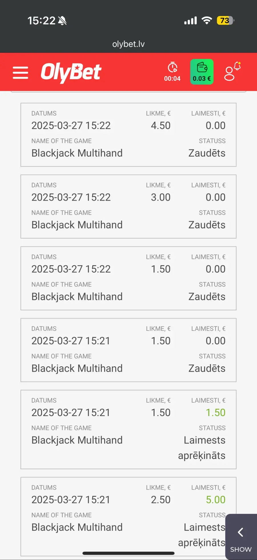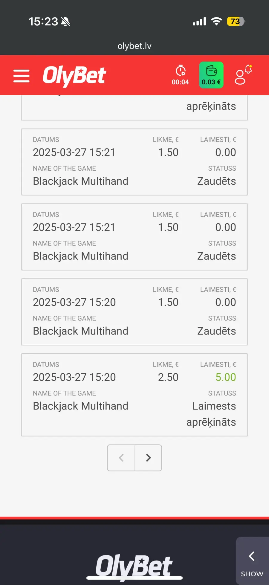 Labs vakars. Tad nu īsumā par olyku stāsts. Ja kādreiz cerat, ka viņiem jūs kaut ko nozīmējat, tā ir tikai šantāža. Iespējams, darbiniekiem pat maksā bonusus par veiksmīgu cilvēku maldināšanu. Bet pamatā jau saņem algas tāpat par cilvēku apkrāpšanu. Ja spēlēsiet gadiem, sapratīsiet, ka atšķiras no citām vietām. Protams, kazino ir pats par sevi viens no veiksmīgākajiem krāpšanas veidiem pasaulē kas dabūts legāls uz papīra. Saprotiet, ka spēles var iestatīt par labu vienai pusei, kāpēc gan lai viņi to nedarītu, kaut kā taču algas savējiem jāmaksā un firmu ar jāuztur. Vai kāds to nopietni pārbauda? Pff .. domāju visi saprata. Dominē nauda. Starp citu man ir aptuveni 200 screenshoti no vienas blackjack spēles, katrā screenshotaa ir 8 zaudētas spēles pēc kārtas un pat vairāk. Spēlē kurš tiek tuvāk 21 uzvar, diez gan slikti, kad olybet aiziet jau kurā roka ar 20 pēc kārtas.. nu reāli sakot nav iespējams tur iziet ar naudu ārā, būs tikai mīnuss. 200 screenshoti ar sakritībām? Nesmīdiniet. Jo tiešām liekas smieklīgi, kad tev olybet dod atbildi, ka var gadīties neveiksmju sērijas.. Viņi pat paņirgāsies par tevi, ja izdomāsi uzrakstīt viņiem. Pievienot gan varēja tikai 10 screenshotus..