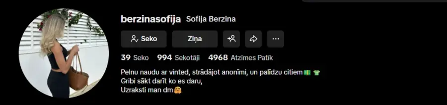 Persona Tik Tok platformā @berzinasofija - Krāpniecība