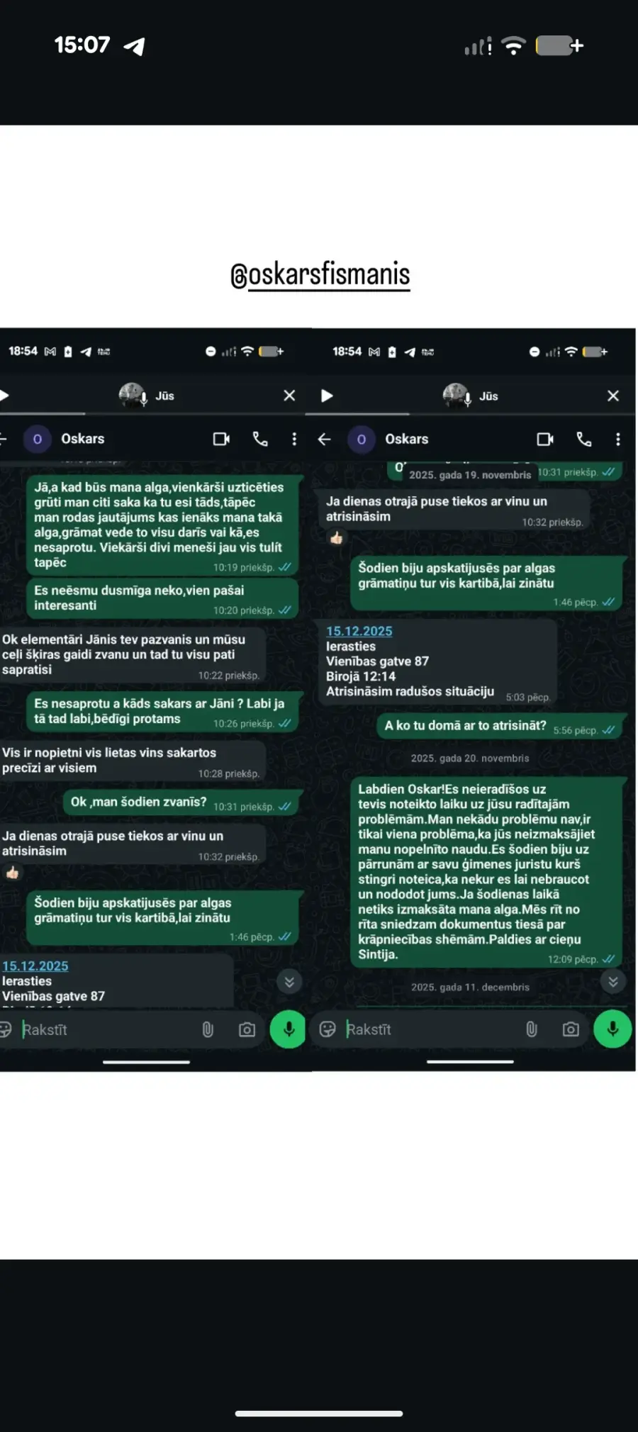 SIA"RANDMAA" reģ.NR 40203594185 Valdes Loceklis Oskars Fišmanis, nav izmaksājis man algu un vēl, divām ārvalstu meitenēm. Algai mums bija jābūt 15.10.25,bet viņa vēl jo projām nav izmaksāta. Sazinājāmies ar Oskaru Fišmani sakarā par algām uz ko bij atbilde, visu risinās viņu jurists Jānis. Tad mums katrai meitenei atnāca mistiski datumi, ka katrai ir jāierodas savā laikā, kaut kādā mistiskā adresē. Mēs skaitāmies šobrīd vēl oficiāli darbā. Lūdzu izskatiet manu iesniegumu, ļoti vēlētos atgūt savu nopelnīto naudiņu. Oskars Fišmanis mūs mutiski atlaida, kad uzjautājām par savām algām no 17.11.25 šis cilvēks mums neatbild un mūs ignorē.