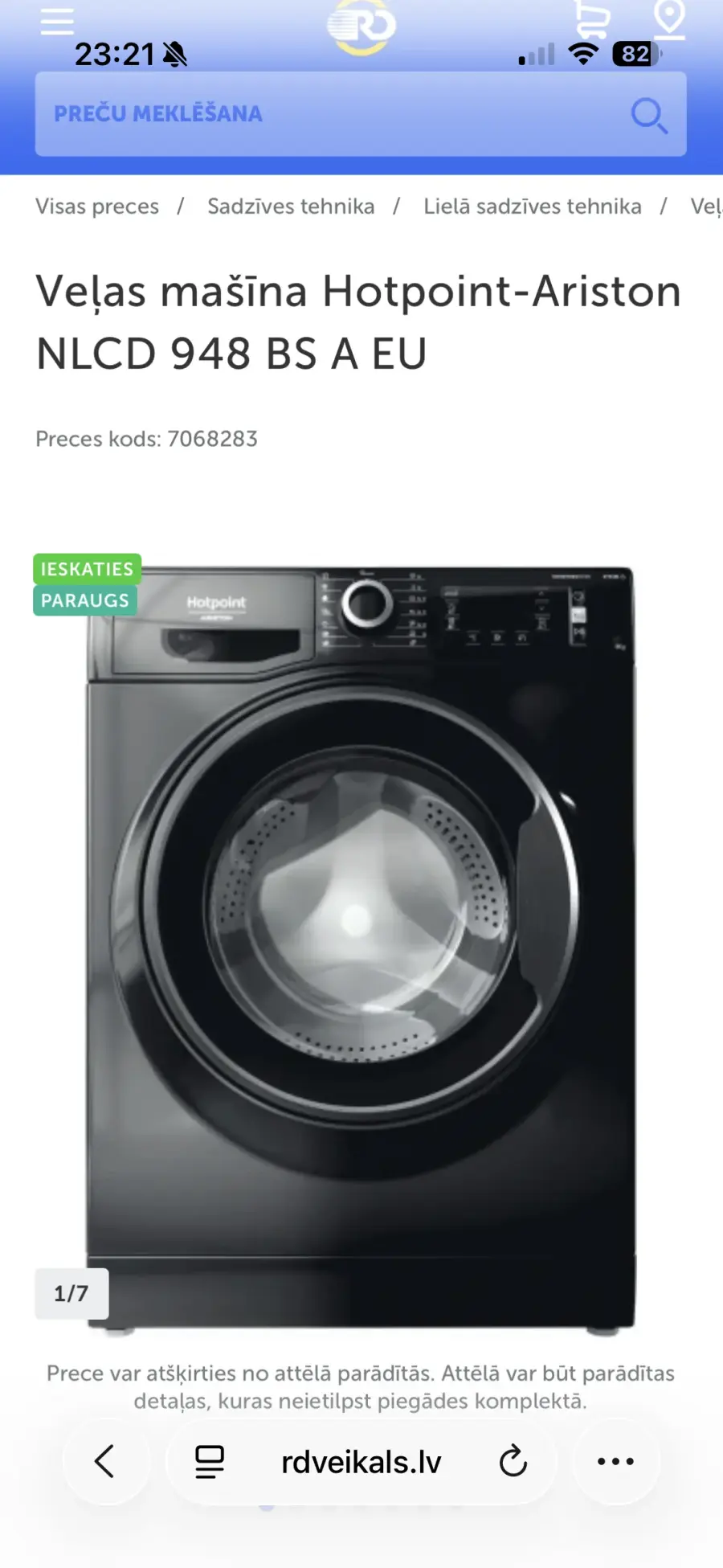 Iegādājos veļas mašīnu Hotpoint Ariston.