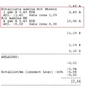 Pirku 4 Hot Wheels mašīnītes. Pirms apmaksas, redzu un norādu kasierei, ka ieskenēti ir 5 gabali- 1 ar vienu nosaukumu, pārējie 4 ar citu, bet tik un tā kopā sanāk 5 gabali. Kasiere norādīja, ka man nav taisnība, ka tas rādās atsevišķi, šobrīd esošās atlaides dēļ.