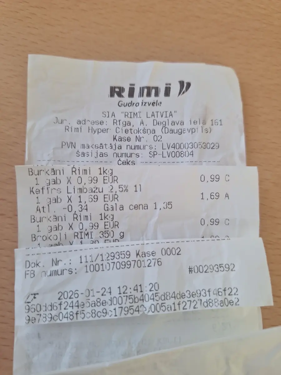 Labdien! Vakar ar vīru iepirkāmies Daugavpils Rimi, kas atrodas Cietokšņa ielā. Paņēmām gandrīz 40 preces, t.sk.burkānu iepakojumu par 0,99 euro un vēl nocenotu burkānu iepakojumu par 0,45 euro. Tā kā preču bija daudz, nebija iespējams izsekot visam. Tikai šodien, pirms čeka izmešanas, nolēmu to pārbaudīt. Izrādījās, ka nocenotie burkāni uzrādās par pilnu samaksu. Par šiem 0,54 euro es nepalikšu nabagāka, bet tā nav pirmā reize, kad tas tiek konstatēts. Ceru, ka tā nav sistēma Rimi pircēju apkalpošanā.