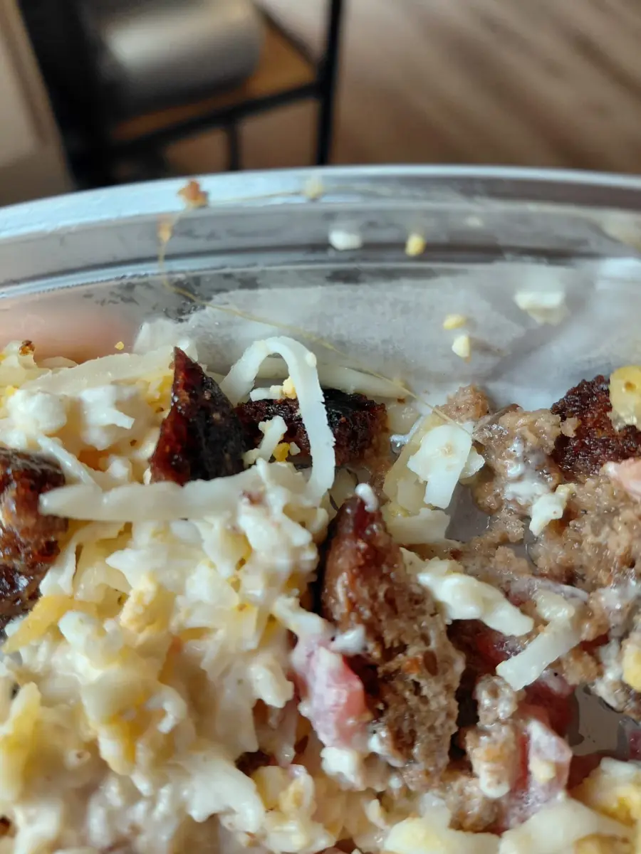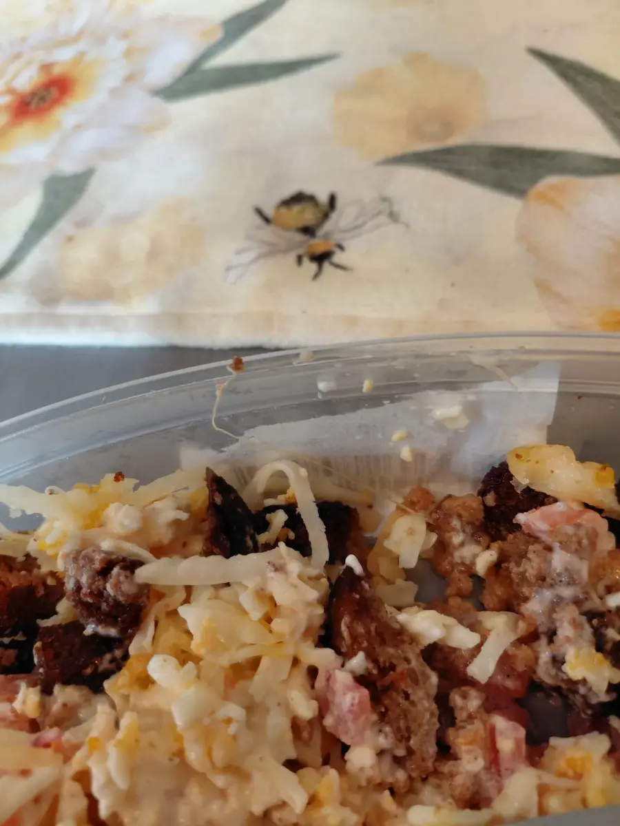 Nopirku rupjmaizes grauzdiņu salātus Rimi Rietumu centrā 16.04.2026, pēc 15 min atbraucu uz darbu un ķēros klāt, taču redzēju baltu sķiedru, atgādina tārpu. Apetīte momentā pārgāja.