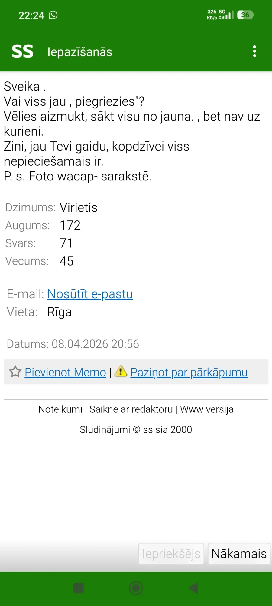 Vēlos pabrīdināt! Maldina sievietes iepazīstoties ka viņam 45gadi. Sakuma raksta normāli, pēc tam prasa bildes. Ja atsaka suta uz reiz maku. Stāsti neatbilst videozvana pa visam cits cilvēks. Apakša patiesība stāv pensionārs ap gadiem 60. Runa visu laiku pa Jēzu kristus. Sludinājumu un bildi pievienošu.