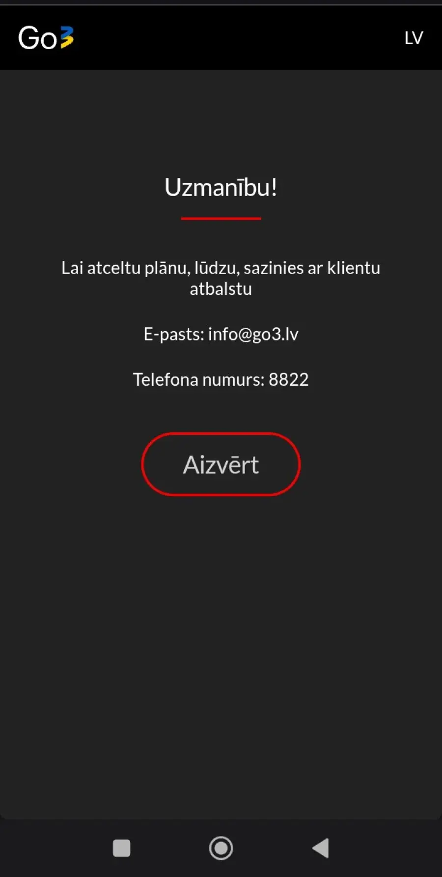 Lai atceltu plānu, lūdzu, sazinies ar klientu atbalstu