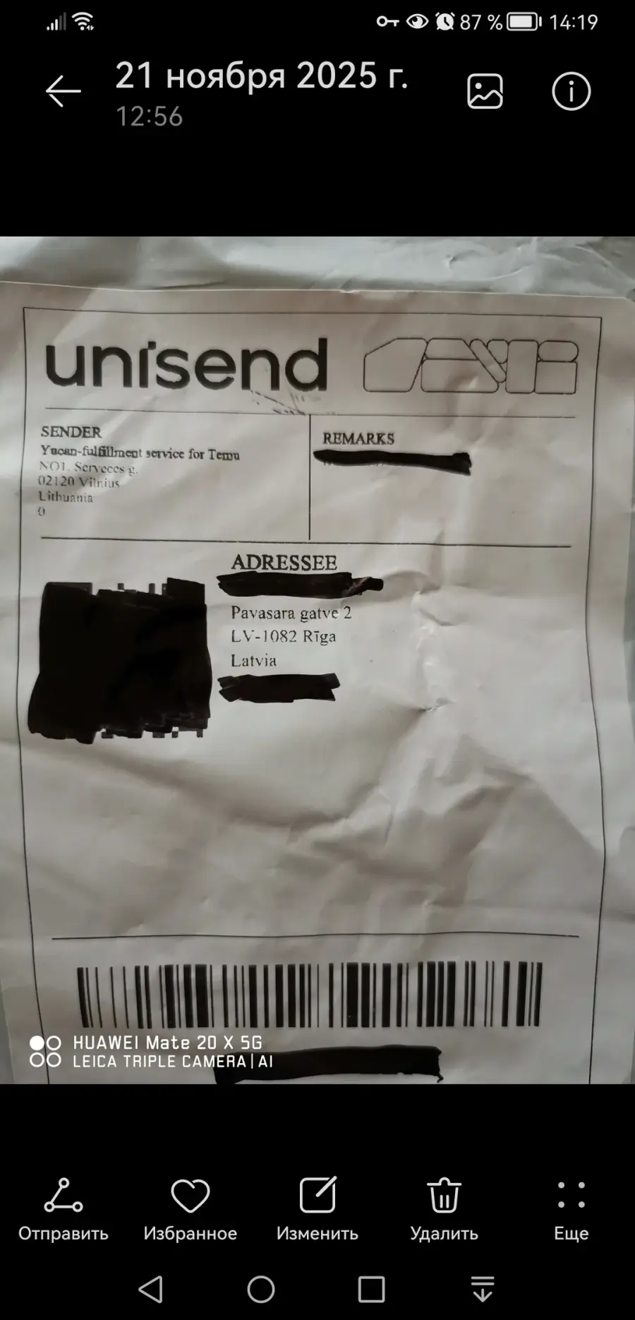 Пришло сообщение о доставки посылки не по адресу, а в другой район. Должно быть доставлено на Павасара гатве 2 (есть пакомат на Павасара гатве 3а, через дорогу), а доставили в Пурциемс, Дзелзавас 78 (Рими), пакет надо забрать до 23.11.2025г. до14:38! Пакомат на Павасара гатве 3а работает но пакет доставляют в другой пакомат!