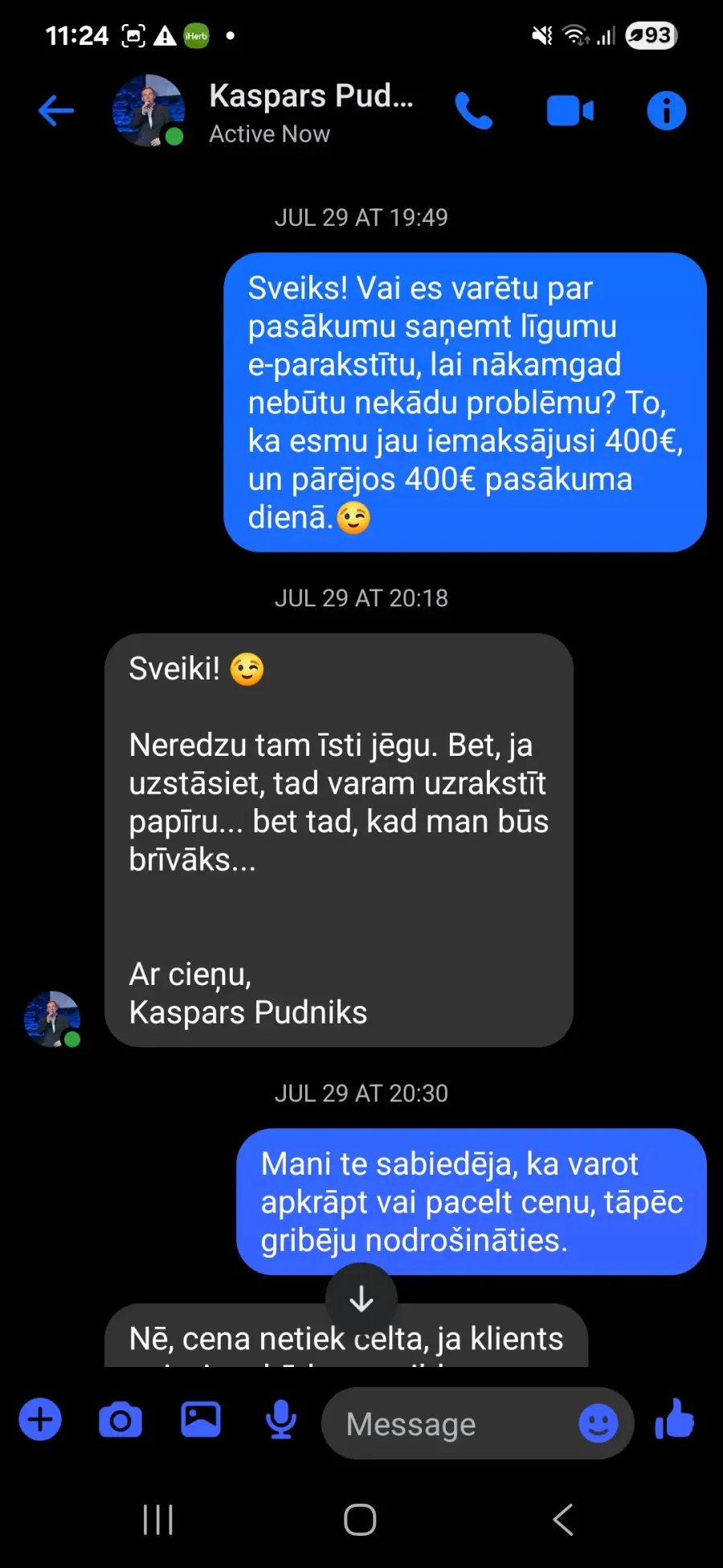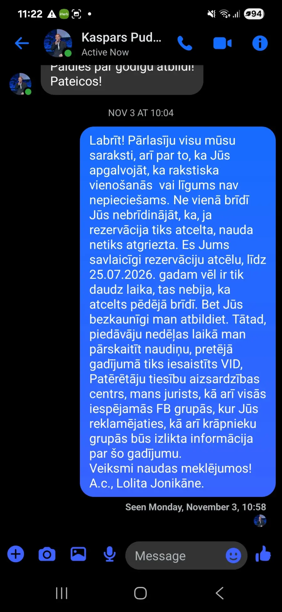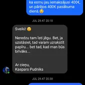 Neuzķerieties uz vakara vadītāju Kasparu Pudņiku! Pirms veiciet naudas iemaksu rezervācijai, noslēdziet rakstisku vienošanos, lai nepaliktu "ar garu degunu" kā es! Divus mēnešus gaidīju līgumu no Kaspara Pudņika, kaut gan viņš uzskatīja, ka nav jēgas līgumam. Laicīgi atcēlu rezervācju (9 mēnešus iepriekš), Kaspars Pudņiks atteicās atgriezt naudu.